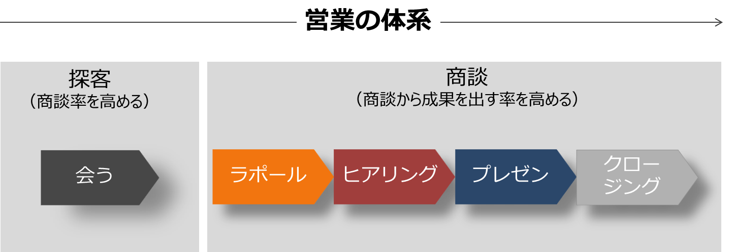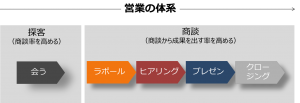 しかし、中堅が新人と同じように基本的な営業をしていると、会社全体の営業力が上がりません。そうならないために、階層に応じた体系的な学習が必要となります。